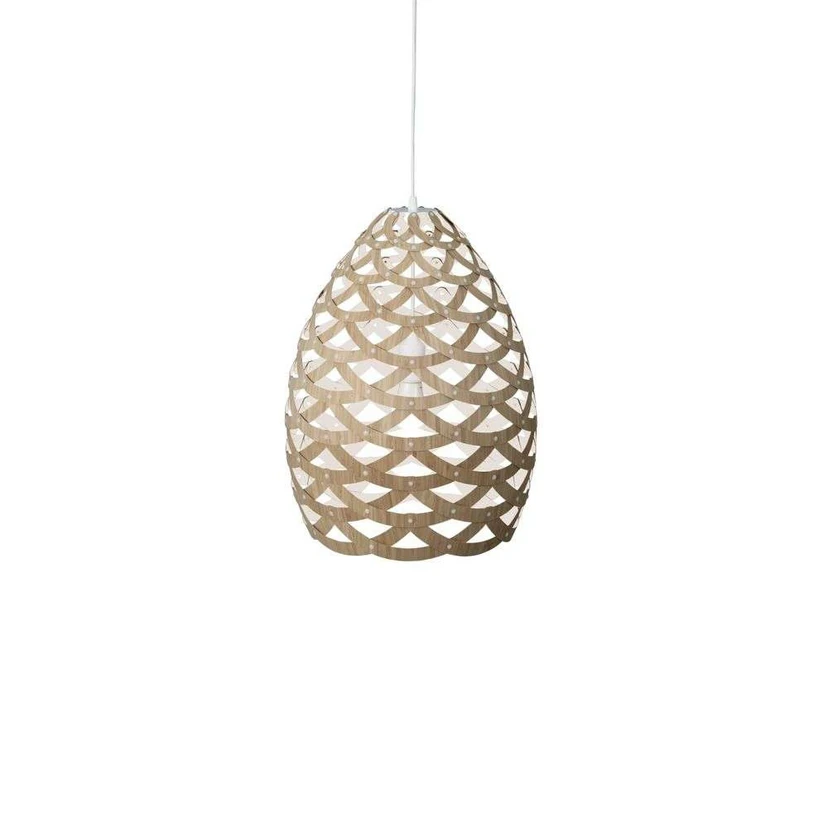 Den smukke TUI Pendel Ø50 Hvid 1 Side er en fantastisk måde at opsummere alt, hvad David Trubridge tror på og kommer af. Den er formet af bæredygtigt bambustræ, og ankommer adskilt i en flad lille kasse for at mindske lampens påvirkning på miljøet – den er tegnet og formet på en facon, hvor man tydeligt mærker David Trubridges enorme forståelse og evner indenfor trædesign og håndværk – og den er opkaldt og inspireret af en New Zealandsk fugl, som den også deler navn med.