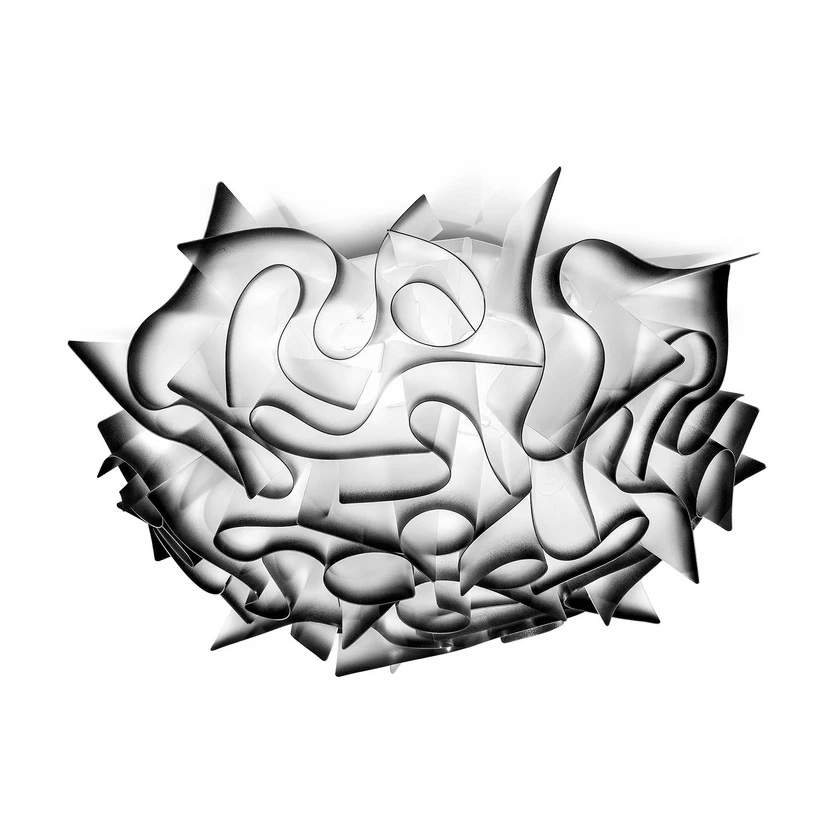 Veli Mini Loftlampe/Væglampe Sort er en florlet og kunstfærdigt designet lampe der fanger blikket fra første øjekast. Lampens fascinerende formsprog afspejler tydeligt den artistiske stil, der går igen i alle kreationer af den italienske designer Adriano Rachele: En kunstlet ynde skabt af transparente elementer, bløde kanter og smukke farveschatteringer. Lyskilden sidder midt inde bag den detaljerige skærm og skaber et flot farvespil, når man tænder for lampen og konturerne af de mange bølgende, flydende former træder tydeligt frem.