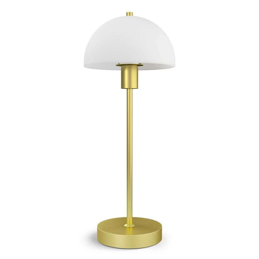 Vienda Bordlampe Brass/Opal varsler godt nyt til alle connaisseurer af smukt design. Det enkle og stilrene udseende er kendetegnende for alle lamperne inden for Vienda-serien fra den danske lysproducent Herstal. Serien indbefatter både pendel-, gulv- og bordlamper, der alle er karakteriseret ved det samme enkle design og samme organiske form. Lampeskærmen er udført i enten metal eller opalglas med en base i et væld af forskellige farver, der hver har individuelle, eksklusive udtryk og sætter sit eget præg på omgivelserne.