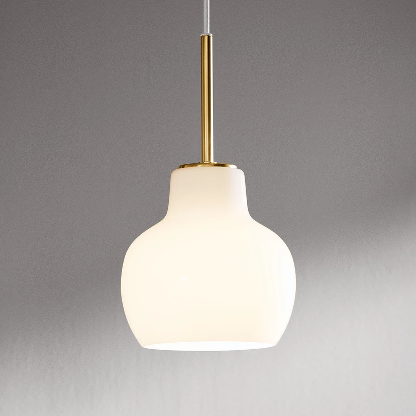 Det mundblæste opalglas er af højeste kvalitet, der sikrer at skærmen og lyset altid fremstår ensartet. Via åbningen i bunden af glasskærmen skinner et koncentreret lys, mens et diffust lys bliver kastet ud i omgivelserne. Den smukke pendel kan med fordel placeres over et spisebord, hvor det nedadgående lys oplyser overfladen under lampen og det diffuse lys skaber en hyggelig atmosfære i rummet.