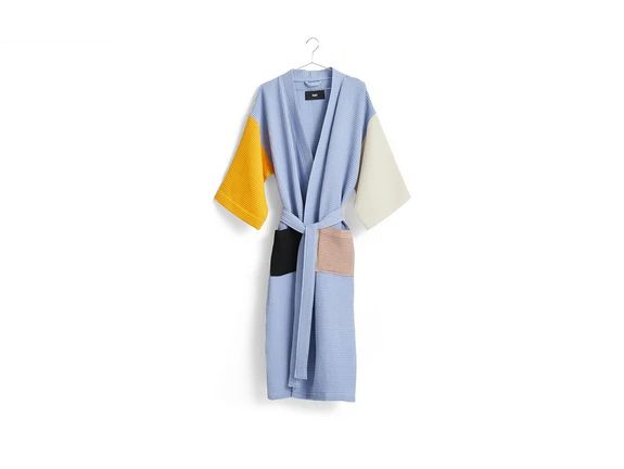 Vi kender alle det at stige ud af badet og række ud efter badekåben. Derfor har danske HAY skabt en serie af unikke badekåber i et enestående design, der smukt forener dette behov og æstetik på den fornemste måde. Waffle Bathrobe Dusty Blue/Multi er en af disse unikke og alsidige badekåber, som er lavet i den mest bløde og holdbare OEKO-TEX® bomuldsblanding med en bemærkelsesværdig tredimensionel vaffel struktur, som navnet også antyder.