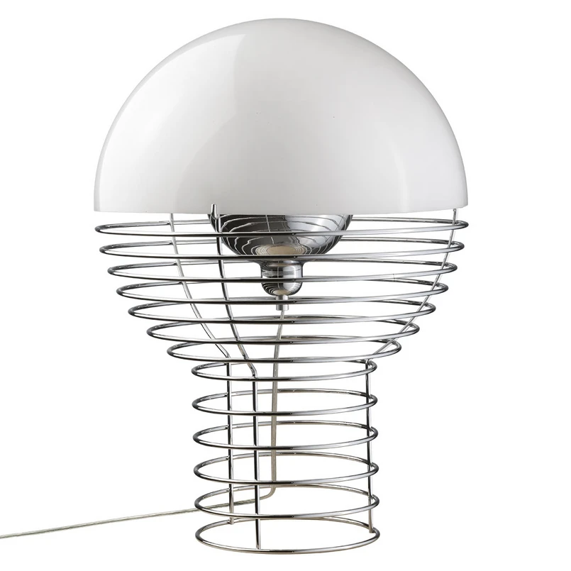 Wire bordlampen er en kærlig tegneserie-fortolkning af en topforspejlet pære, tegnet af ingen ringere end Verner Panton, som jo er gået hen og blevet mere end folkeeje.