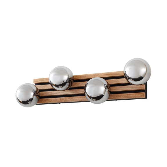 Væglampe Woodora kombinerer den naturlige varme fra gummitræ med det elegante udtryk fra røggråt glas. Den med 4 lyskilder har en elegant udformning og bliver et ægte blikfang i designorienterede interiører og imponerer med sin særlige lyseffekt. Visuelt minder den om moderne akustikpaneler og sætter dermed et trendbevidst præg. Derudover kan Woodora bruges fleksibelt, da den både kan monteres på væggen og i loftet.