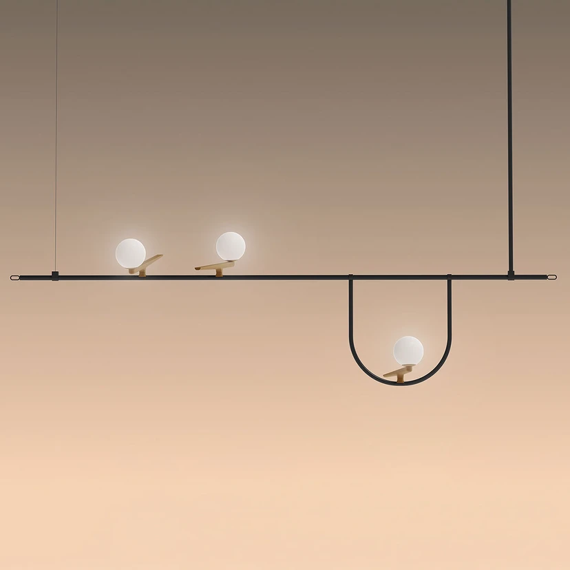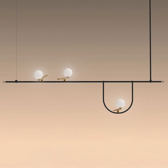 Yanzi S1 Pendlen, er en fantastisk lampe der leger med materialerne. Konstrueret i messing, træ og blæst glas leder lampen tankerne hen imod en lille fugl på sin pind.