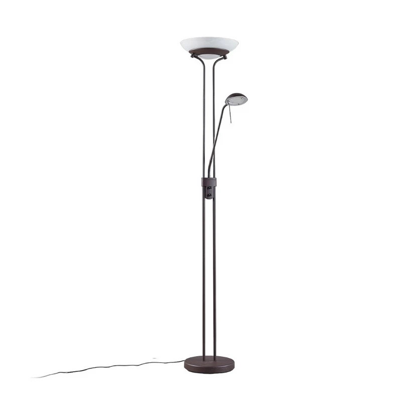 Yveta Gulvlampe Rust/White imponerer ikke kun med sit tidløse design men også sine mange funktioner og indstillingsmuligheder, der opfylder mange behov. Lampen er sammensat af en rund metalfod og et tvedelt stel, der munder ud i en fornem opadvendt skærm af opalhvidt glas. Denne giver et harmonisk indirekte up-light, der er populært, da lyset fremstår langt blødere end et down-light og spredes længere ud i rummet.