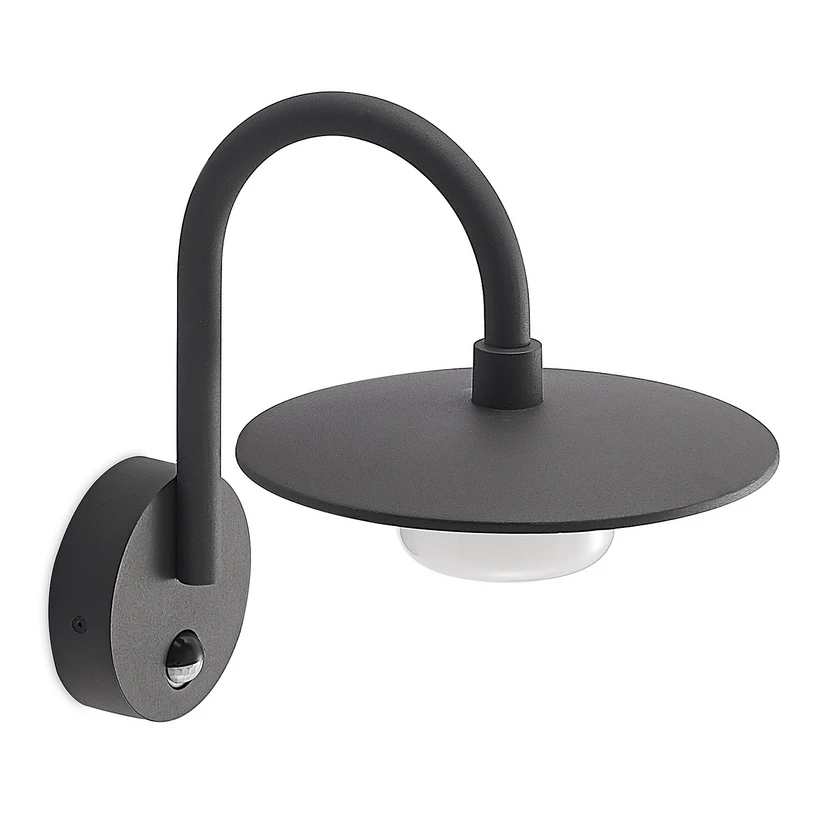 Zamalino w/Sensor Dark Grey Udendørs Væglampe præsenterer sig i et harmonisk design, der virker forholdsvist enkelt men som samtidig er suppleret med smukke tilføjelser i form at et svunget stel og en bredskygget lampeskærm. Af denne grund kan lampen indpasses i både moderne og nostalgiske stilarter.
