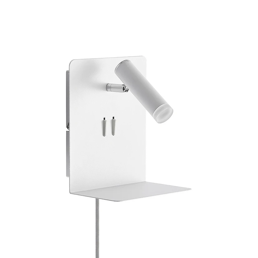Zavi LED Væglampe USB White finder hurtigt plads som en uundværlig del af soveværelsets interiør takket være sit multifunktionelle design og mange muligheder for belysning. Den alsidige konstruktion tjener ikke kun som lyskilde men også som pladsopbevaring takket være det brede stel, der udgør et lille bord. Her kan man passende lægge sin telefon eller andre elektroniske enheder, som har mulighed for opladning via det indbyggede USB-stik.