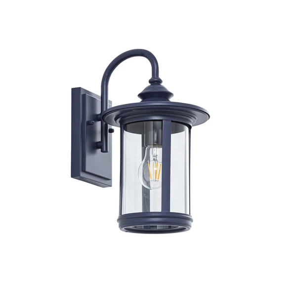 Udendørs væglampe Zayn kombinerer et tidløst, antikt design med højkvalitetsmaterialer som aluminium og glas. Den blå farve i kombination med transparente glaselementer skaber et stilfuldt accent, der optisk værdifuld udendørsarealer som altaner eller terrasser. Takket være kapslingsgrad IP23 er lampen optimalt beskyttet mod stænkvand og er ideel til brug i beskyttede udendørsområder.