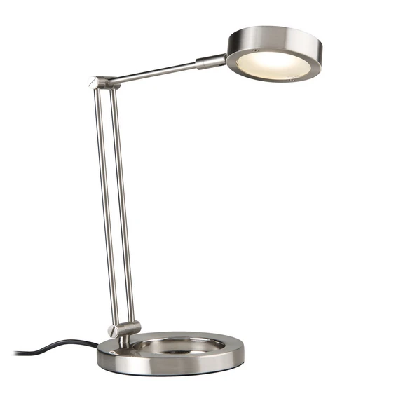 Zed Bordlampe Brushed Iron imponerer med sit enkle designsprog og praktiske funktionalitet, der gør den velegnet til alle typer rum og indretninger. Lampen kommer i et moderne udseende med en overflade i børstet jern og en minimalistisk udformning bestående af et skiveformet lampehoved, der er monteret til et drejeligt stel og en tilsvarende cirkulær lampefod med en lille sænkning, der giver plads til opbevaring af viskelæder, papirklips, mm.